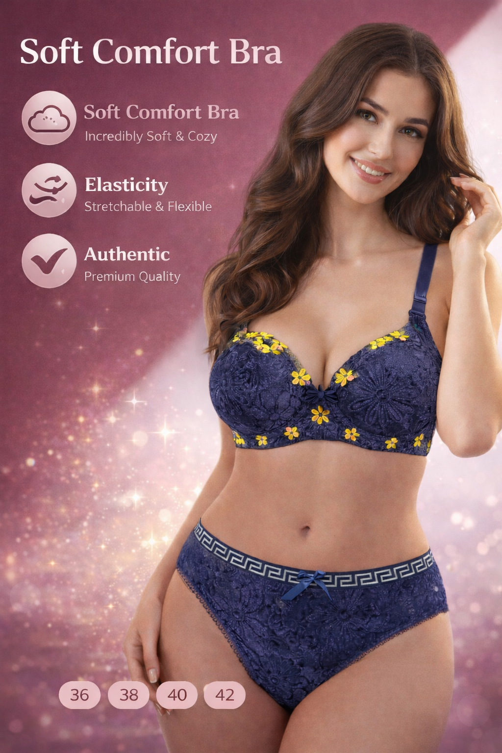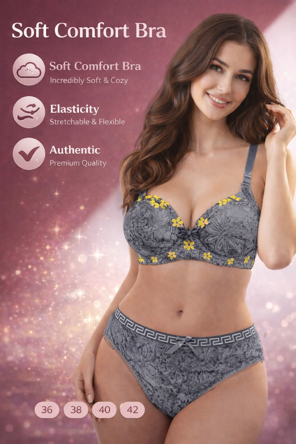 Elegant bra and panty set made with soft, breathable fabric for all-day comfort. Designed for a perfect fit with gentle support, smooth finishing, and a stylish look that feels as good as it looks.